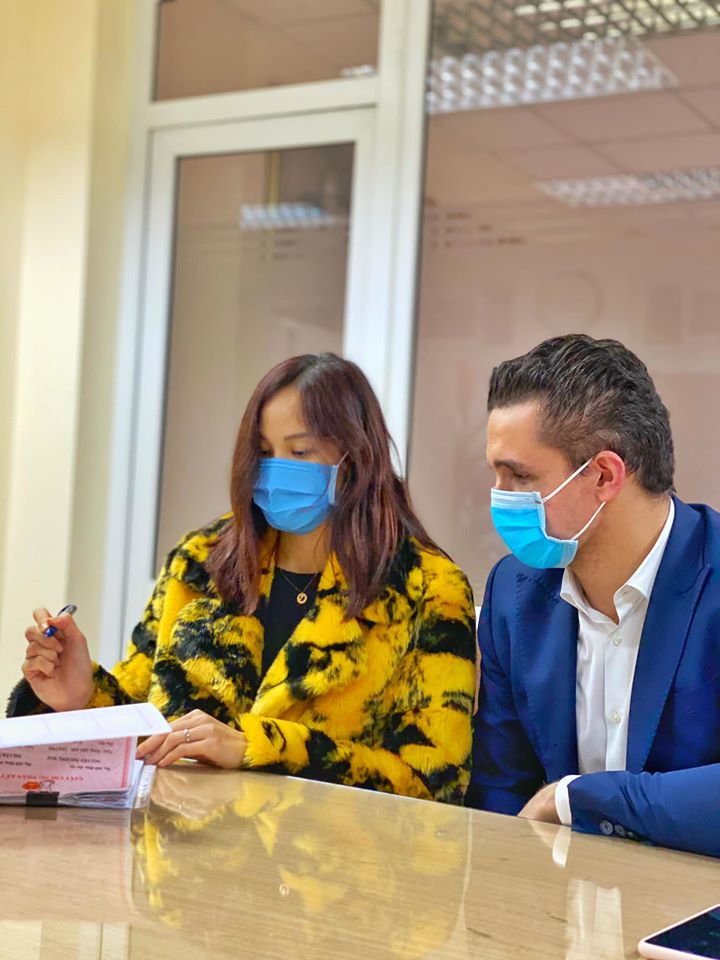 Vì đang có dịch viêm phổi Corona nên vợ chồng Phương Mai cũng mang khẩu trang kỹ lương để bảo vệ sức khỏe mình cũng như những người xung quanh