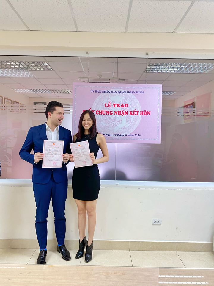 Mặc dù đã tổ chức lễ cưới vào năm 2019 và có với nhau 1 cậu con trai kháu khỉnh nhưng mãi tới ngày 07/02 vừa qua, siêu mẫu Phương Mai mới cùng ông xã ngoại quốc của mình đi lĩnh giấy chứng nhận kết hôn.