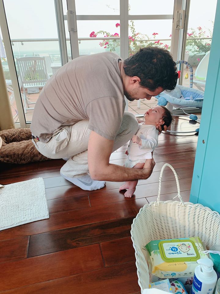 Phương Mai cho biết cô may mắn khi có ông xã rất tâm lý và khéo chăm con