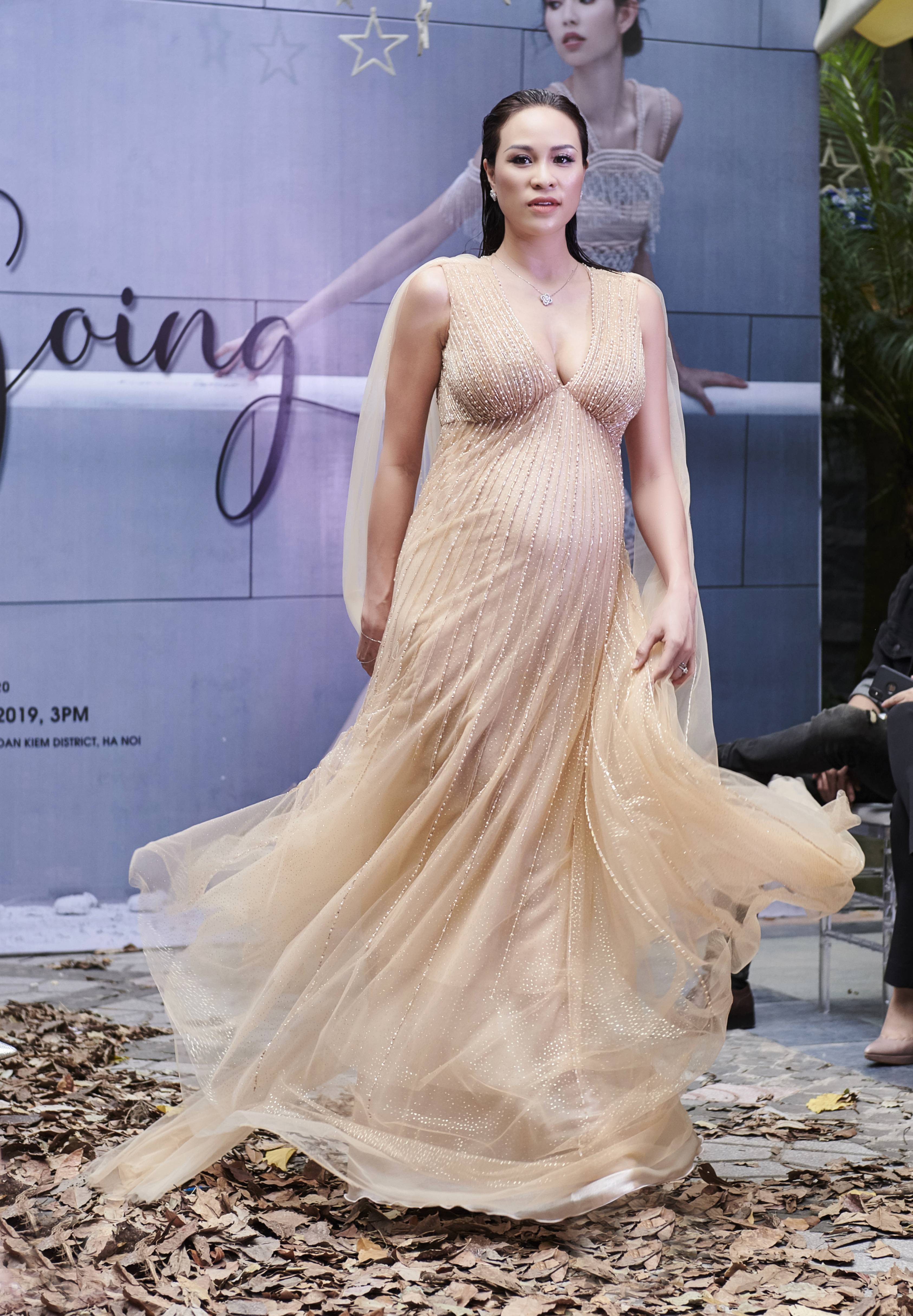 Clip Phương Mai vác bụng bầu 8 tháng tự tin sải bước catwalk