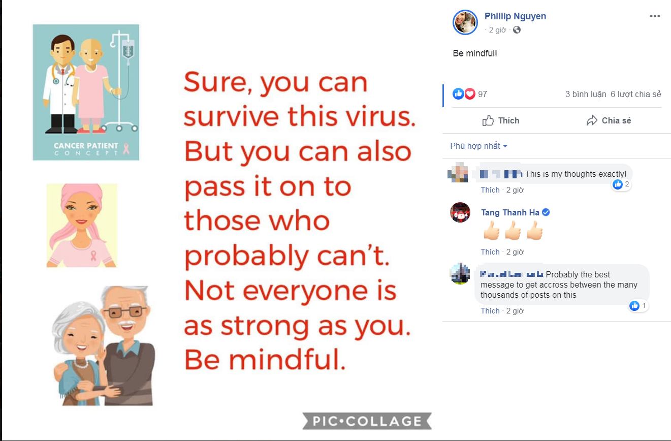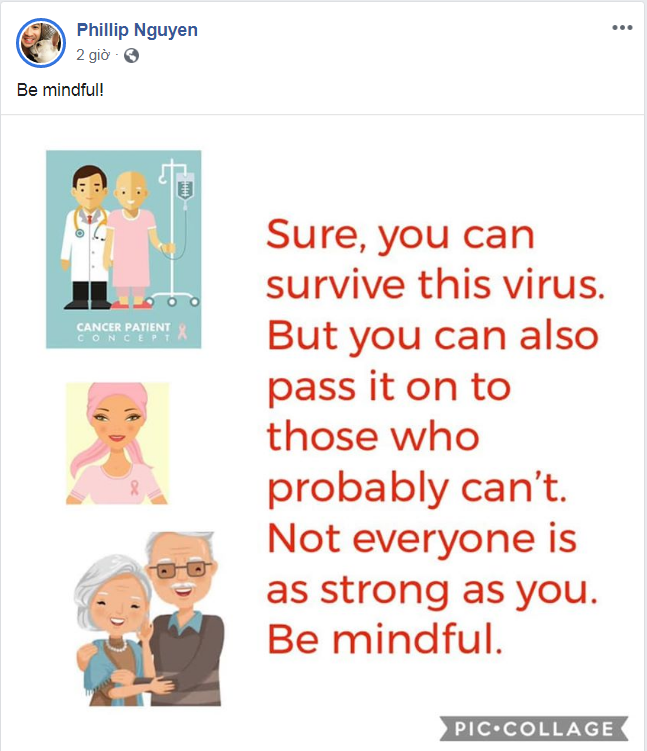 Phillip Nguyễn tiếp tục đăng chia sẻ kêu gọi mọi người đảm bảo an toàn trong mùa dịch