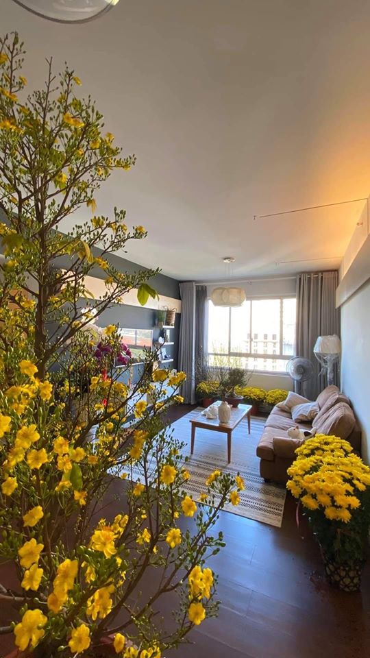 Bên trong phòng khách của Khánh Vân cũng trưng một chậu mai vàng đang nở rộ