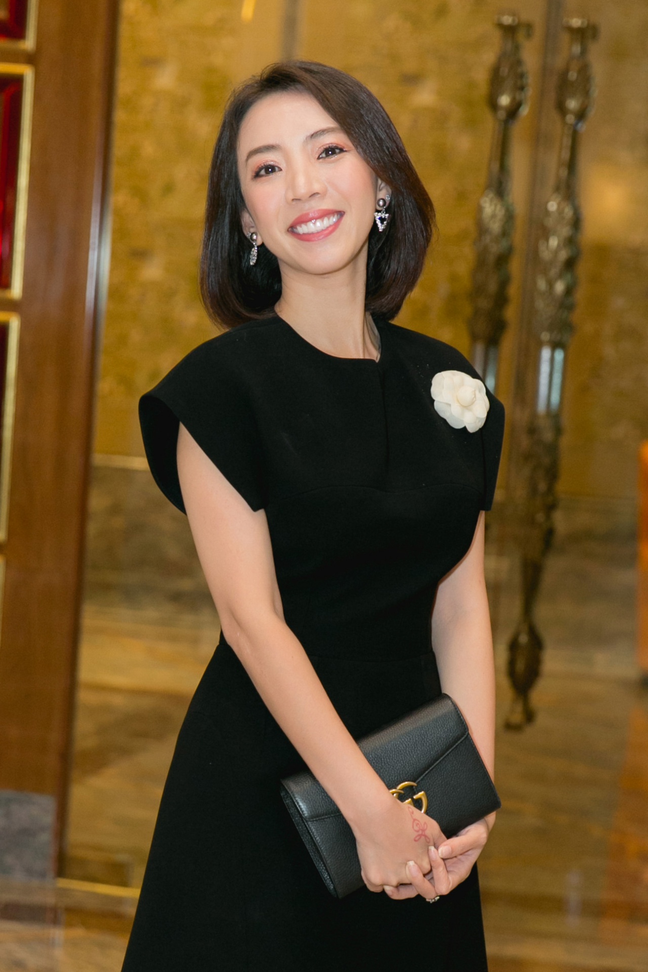 Tuy tham dự đám cưới nhưng vợ chồng Thu Trang - Tiến Luật vẫn quyết chọn tông màu đen làm chính, nhưng mỗi người đều có cách riêng để tạo sự nổi bật.