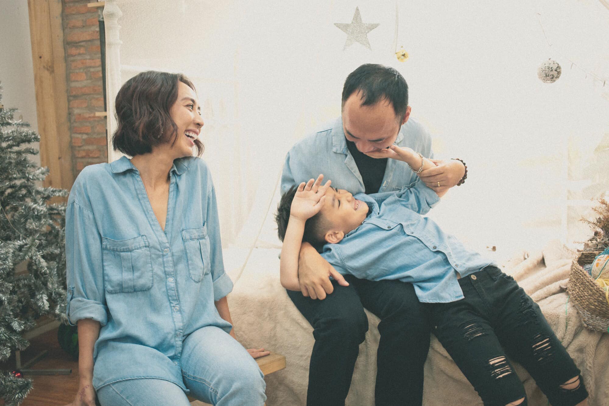 Cậu nhóc Andy cũng không hề “thu kém” papa của mình khi cũng diện bộ suit bảnh bao tone sur tone với bố. Hỉnh ảnh gia đình hạnh phúc nắm tay nhau khiến nhiều người phải ghen tị.