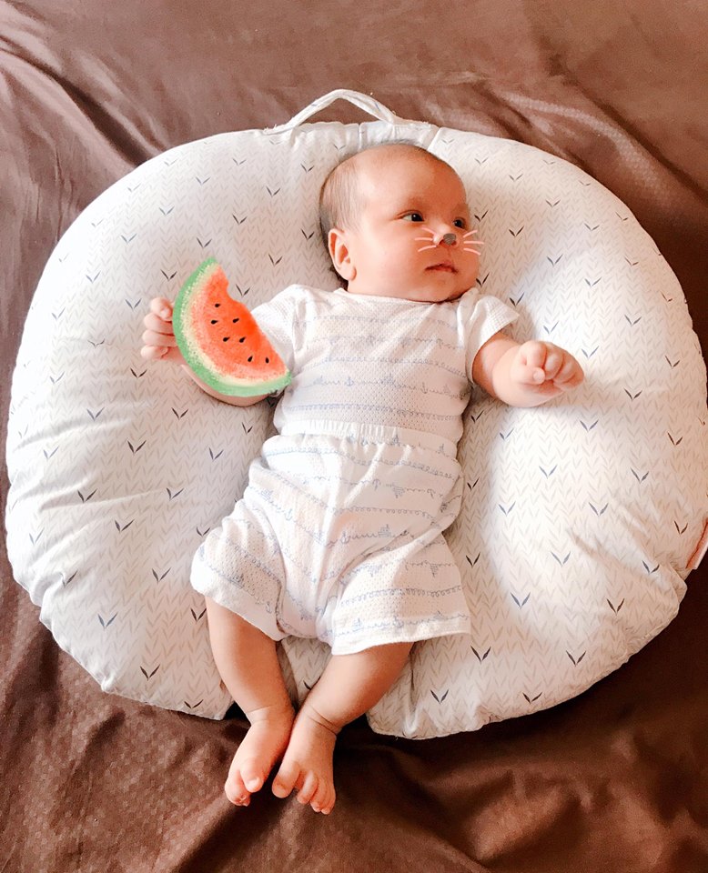 Tú Vi khoe ảnh tình cảm của gia đình nhân dịp con gái nhỏ tròn 3 tháng tuổi. Cô hạnh phúc chia sẻ: “Mẹ thương bé lắm, không mong gì hơn là bé luôn khoẻ mạnh và bình an… Con mau lớn đi chơi với mẹ nha! Mẹ ở nhà chơi với con bữa giờ mẹ cũng hơi buồn rồi hihi!“.