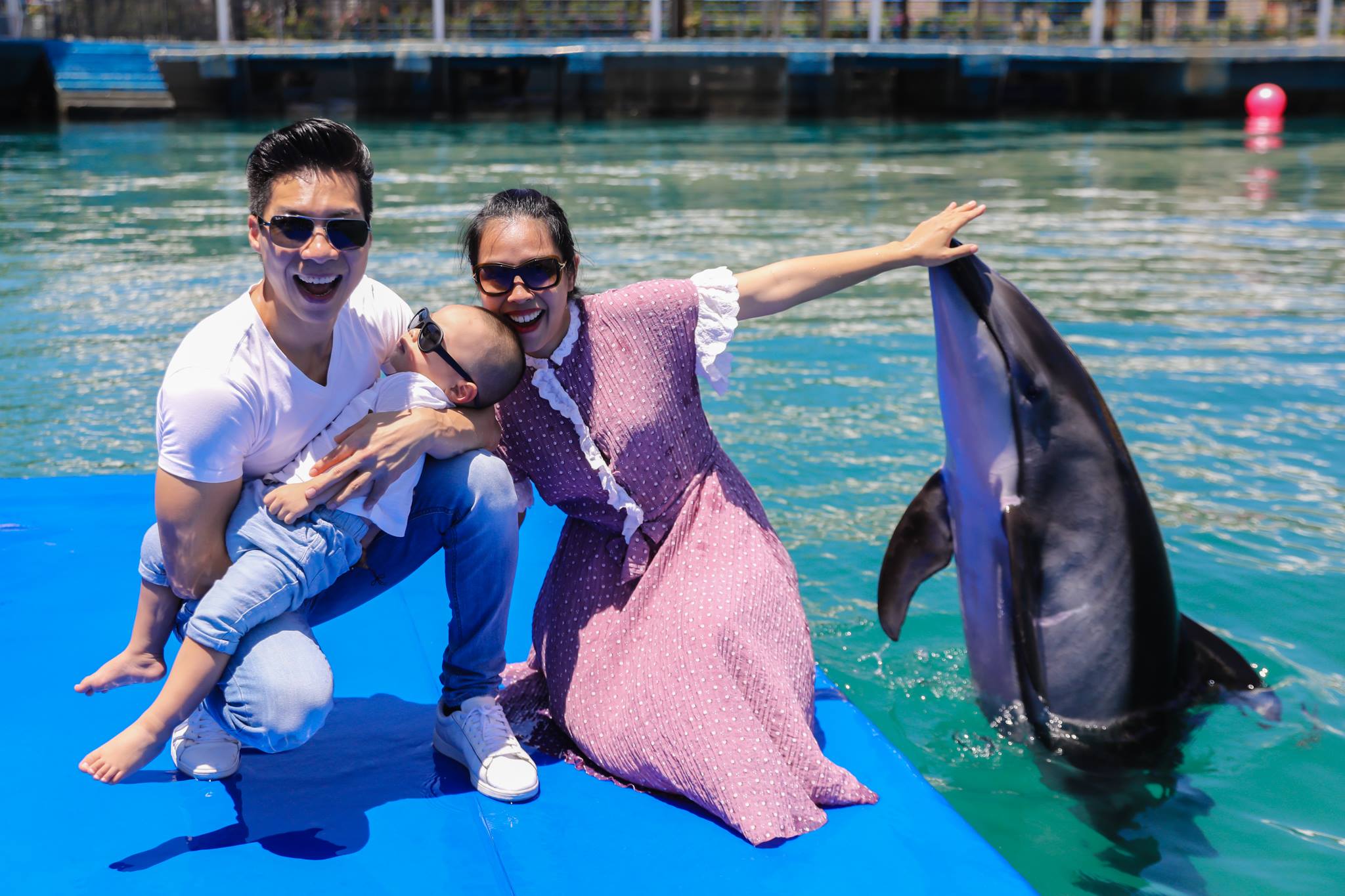 Gia đình Quốc Nghiệp rủ nhau đi thăm cá heo vui vẻ, thế nhưng quý tử nhà anh lại ngủ bất chấp: “Mặc cho trời trong cảnh đẹp, mặc cho PàPá , MàMá cứ vui cười thoả thích, mặc cho chú cá heo dễ thương có lên chào Hùng Tâm ngàn lần thì Hùng Tâm vẫn say giấc nồng. Bó tay cái nết ngủ“.