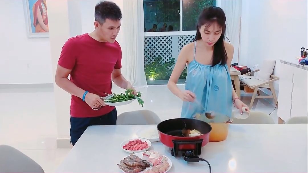 Mới đây nhất, Thủy Tiên tiếp tục thu hút sự chú ý của mọi người khi đăng clip cô cùng ông xã Công Vinh chuẩn bị một bữa lẩu thịnh soạn để ăn tối cùng con gái Bánh Gạo.