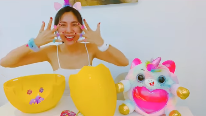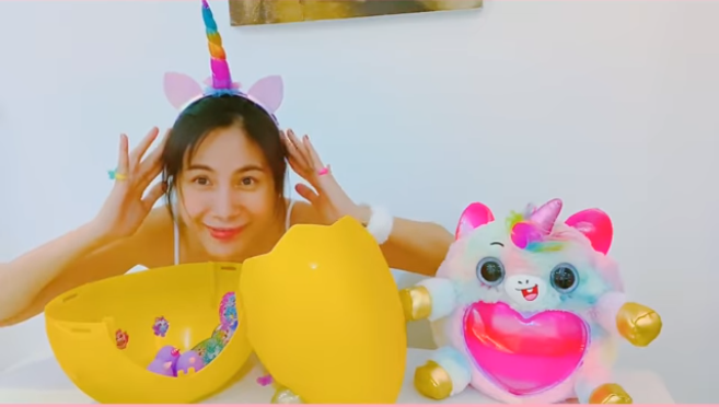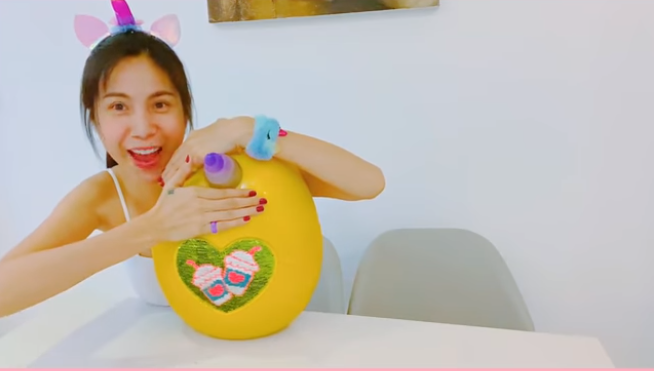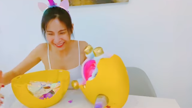 Gương mặt phấn khích khi khui quả trứng đồ chơi siêu to khổng lồ của Thủy Tiên