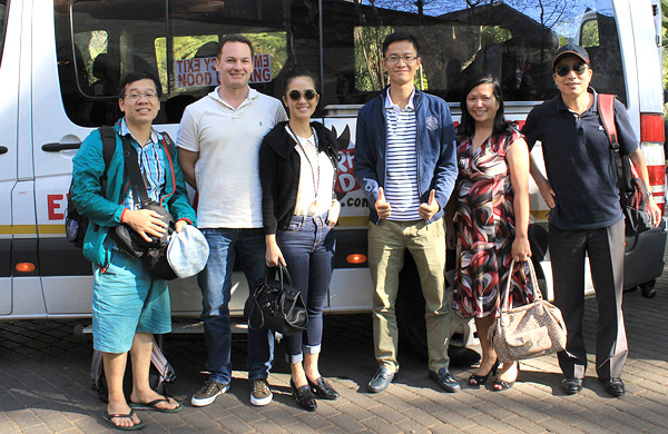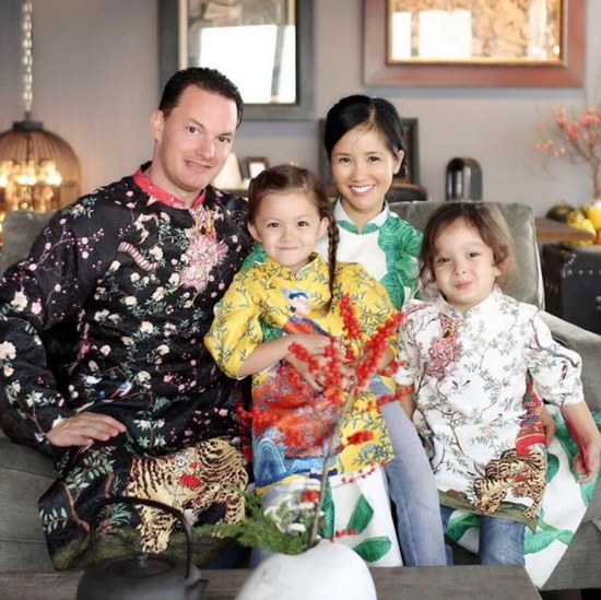Hai bé Tôm và Tép hạnh phúc chụp ảnh chung với bố mẹ.