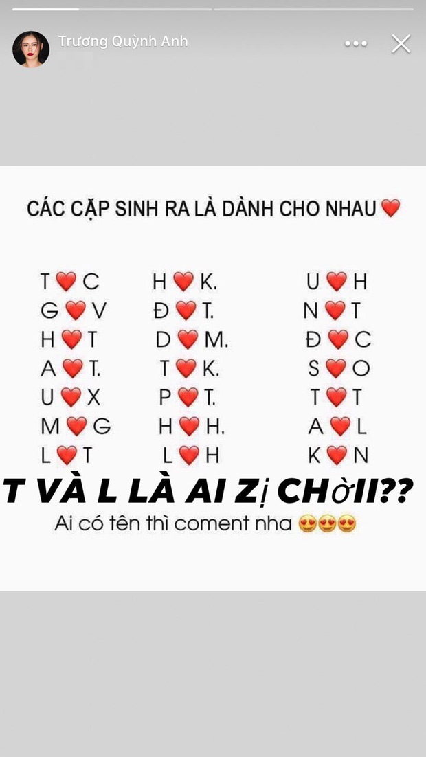 Ngay lập tức cư dân mạng đoán già đoán non rằng đây đích thực là Trương Quỳnh Anh đang ám chỉ Tim và Đàm Phương Linh (cả hai có chữ cái viết tắt tên trùng khớp).