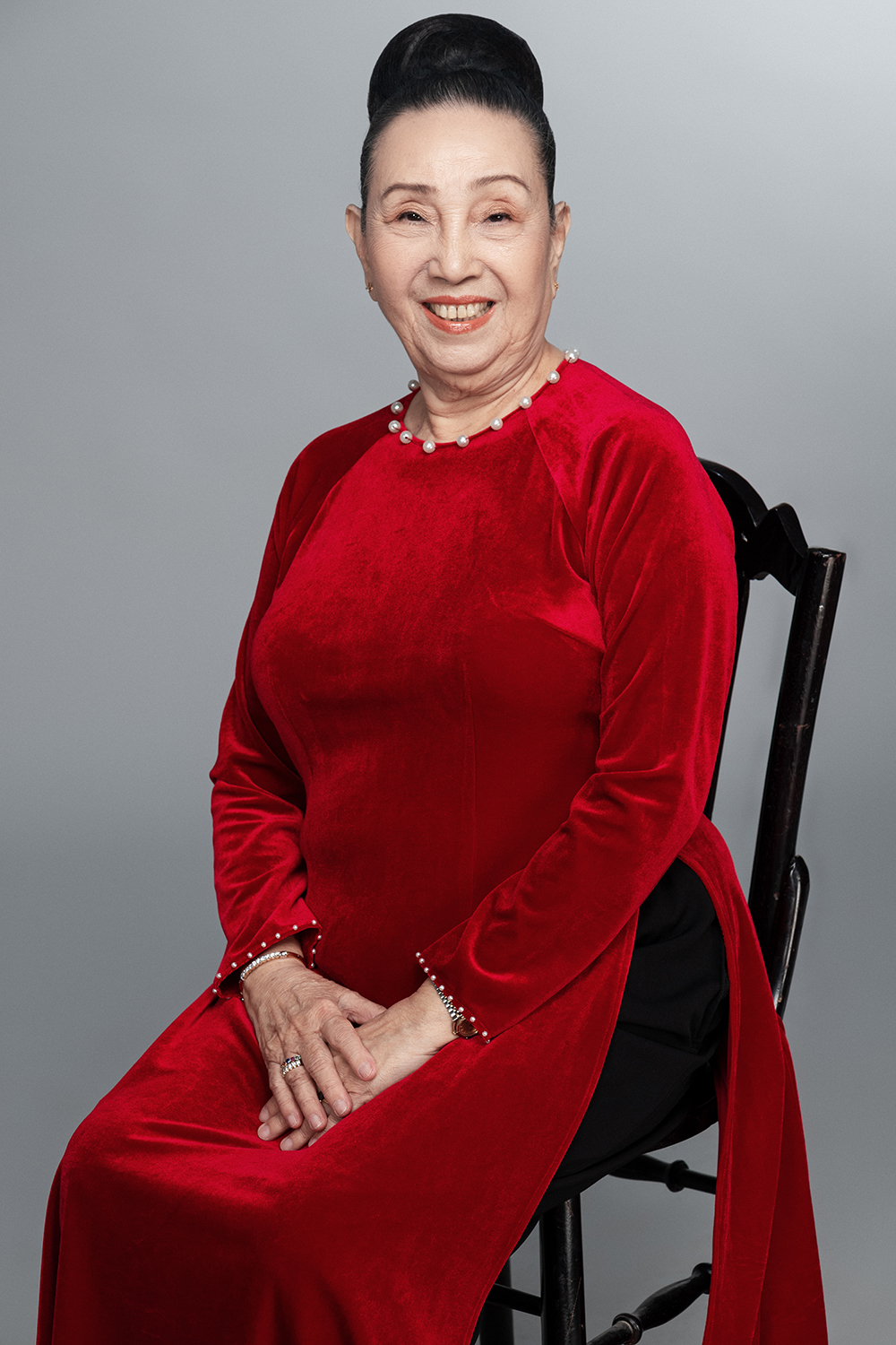 Mẹ của Diễm My diện chiếc áo dài bằng vải nhung hợp lứa tuổi