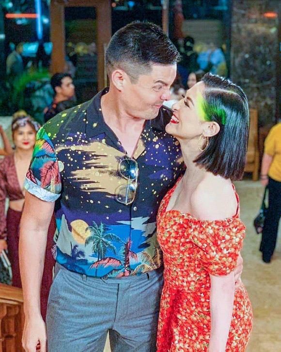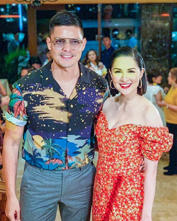 Xuất hiện tại buổi tiệc, “Mỹ nhân đẹp nhất Philippines” trở thành tâm điểm thu hút sự chú ý của mọi người khi không ngần ngại khoe thân hình mũm mĩm bên cạnh chồng yêu, cô mặc trang phục đầm hoa với thiết kế hở vai đầy gợi cảm, còn Dingdong Dantes thì mặc áo sơ mi ngắn tay đầy màu sắc.