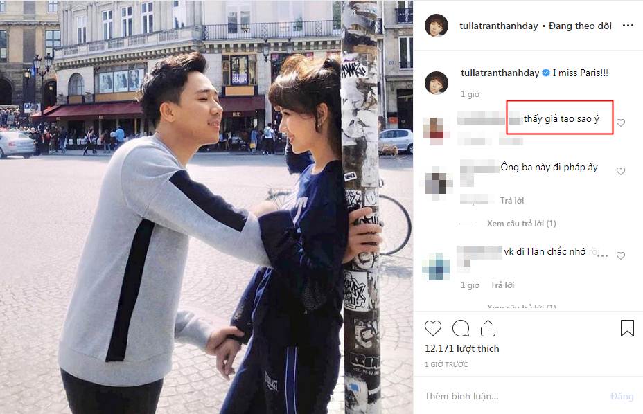 Mới đây, Trấn Thành chia sẻ hình ảnh “diễn phim ngôn tình” cực kì lãng mạn tại Pháp khiến người hâm mộ “nghẹt thở”. Hành động bày tỏ tình cảm của đôi vợ chồng khiến nhiều người hâm mộ tình cảm mặn nồng. Tuy nhiên, một số người cho rằng hành động này khá “lố” và giả tạo.