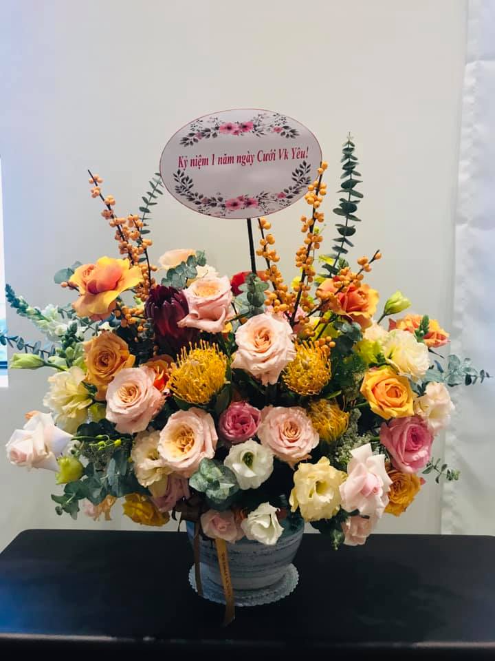 “Vậy là đã tròn 1 năm ngày cưới , và cũng trải qua quá nhiều trách nhiệm khi 2 vợ chồng đón Tin và Sóc ra đời, vợ chỉ mong muốn chúng ta mỗi ngày 1 hiểu thêm về nhau nhiều hơn nữa để chia sẻ và cùng lắng nghe, cùng tôn trọng cách dậy con, cảm ơn lẵng hoa chồng mua tặng vợ nhé, mong ngày nào của chúng ta cũng là ngày hạnh phúc , bớt áp lực bỏ ra hết khỏi đầu, chúng ta nắm tay nhau đi đến nơi nào mình muốn nhé.”