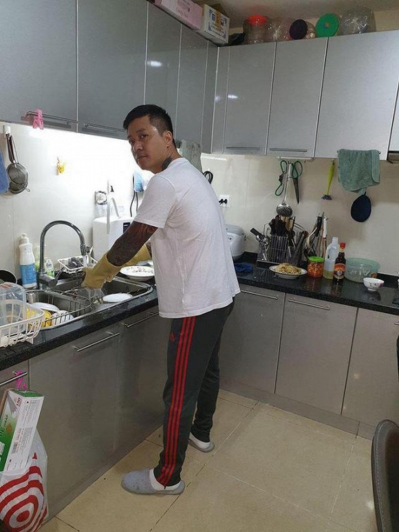 Không chỉ riêng Tuấn Hưng mà hội anh em đã lập gia đình của nam ca sĩ tất cả đều hăng hái lau dọn nhà cửa và vào bếp nấu cơm
