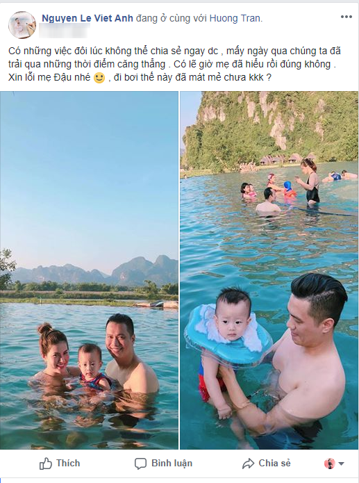 Trên trang cá nhân của nam diễn viên Việt Anh cũng đã đăng tải dòng trạng thái chia sẻ “Có những việc đôi lúc không thể chia sẻ ngay được. Mấy ngày qua chúng ta đã trải qua những thời điểm căng thẳng. Có lẽ giờ mẹ đã hiểu rồi đúng không? Xin lỗi mẹ Đậu nhé”.