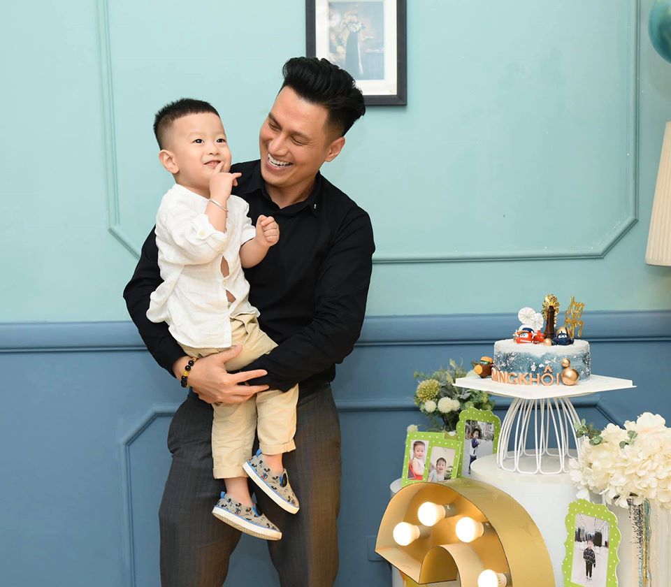 Việt Anh bên con trai trong tiệc sinh nhật mừng cậu bé tròn 3 tuổi