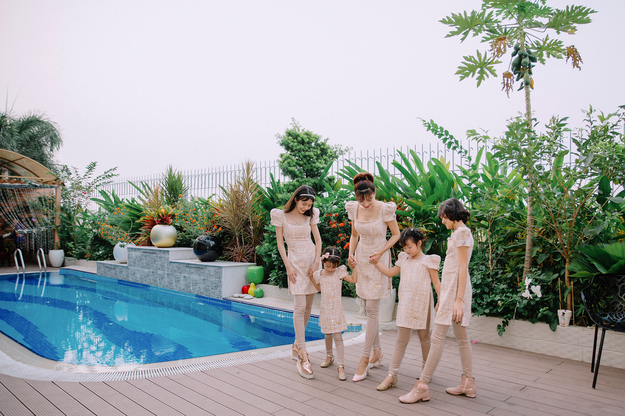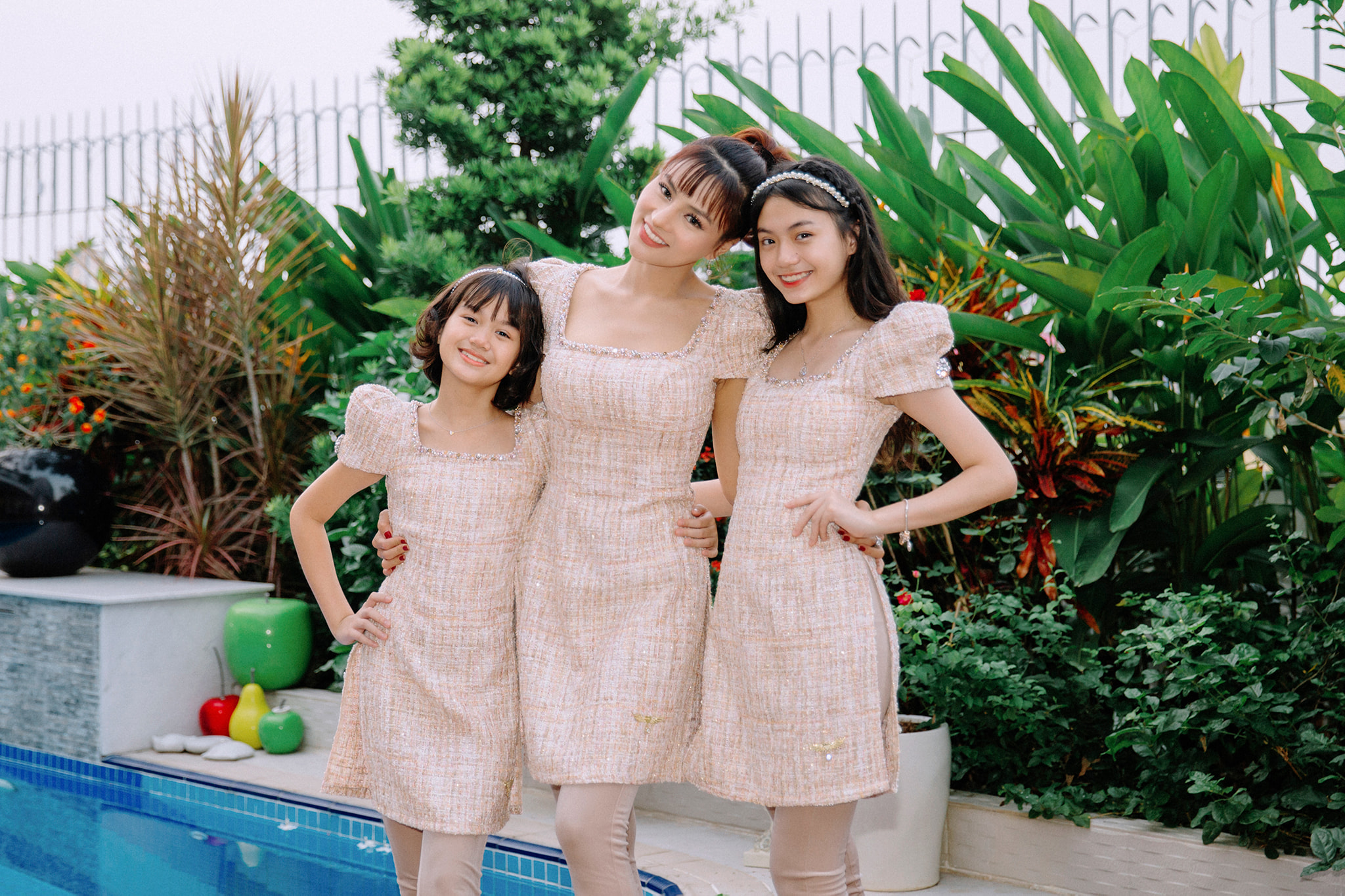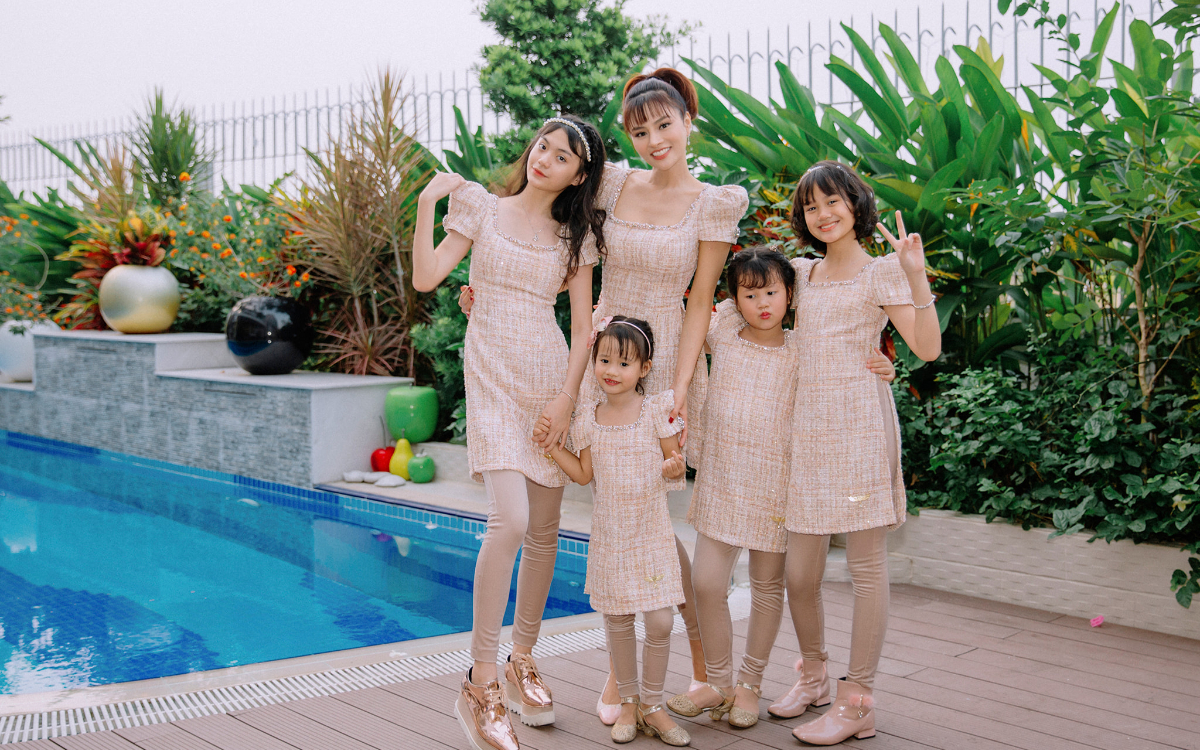 Mới đây trên trang cá nhân của mình, siêu mẫu Vũ Thu Phương đã thu hút sự chú ý của mọi người khi đăng tải loạt ảnh mặc đồ đôi chụp cùng 4 cô con gái cưng. Nữ siêu mẫu còn hài hước đính kèm caption: “Nhà có 5 nàng tiên”.