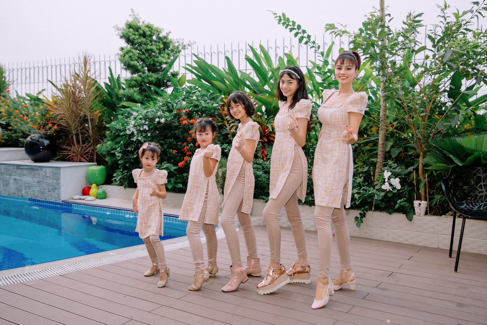 Cả 5 mẹ con đều diện trang phục đồng điệu nhau