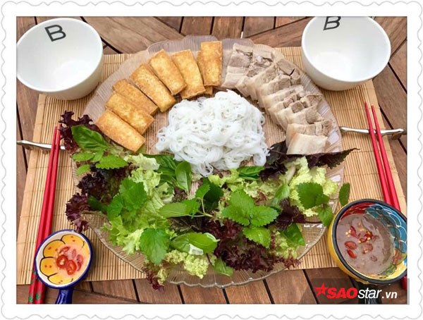 Chị Xinh bày biện món ăn đẹp mắt với rau thơm Việt được trồng trong vườn nhà.
