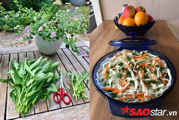 Những bữa ăn như ở Việt Nam với các món rau từ trong khu vườn của gia đình chị.