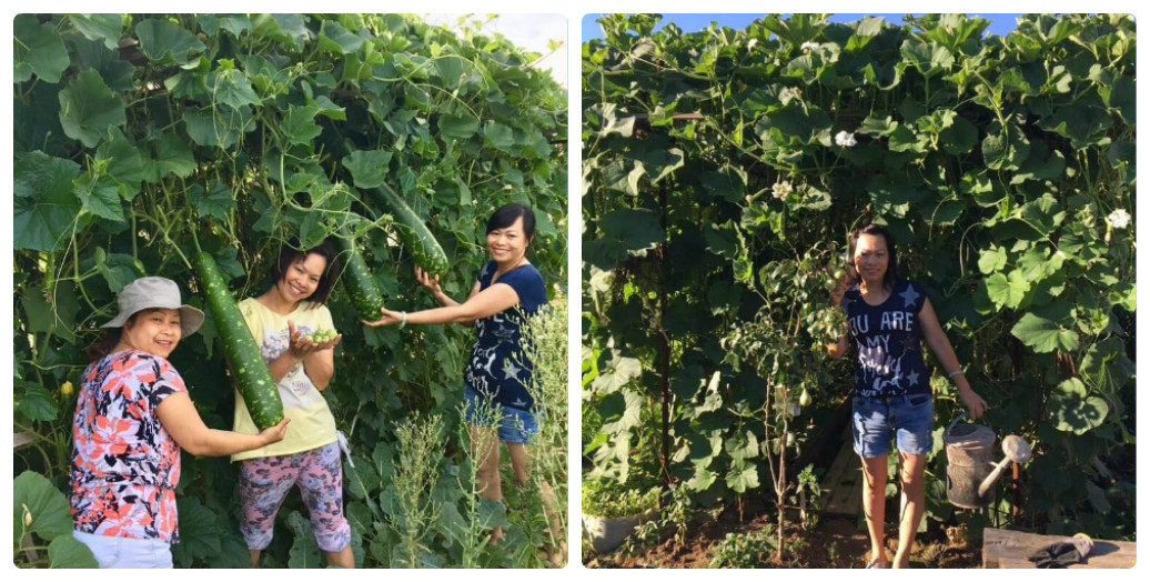 Trong khu vườn của chị Hằng có thể thấy đủ loại rau trái Việt như bí ngô, bí đao, đỗ, mướp, rau cải… hay cả những loại rau rất đặc biệt như rau cần, cà pháo.