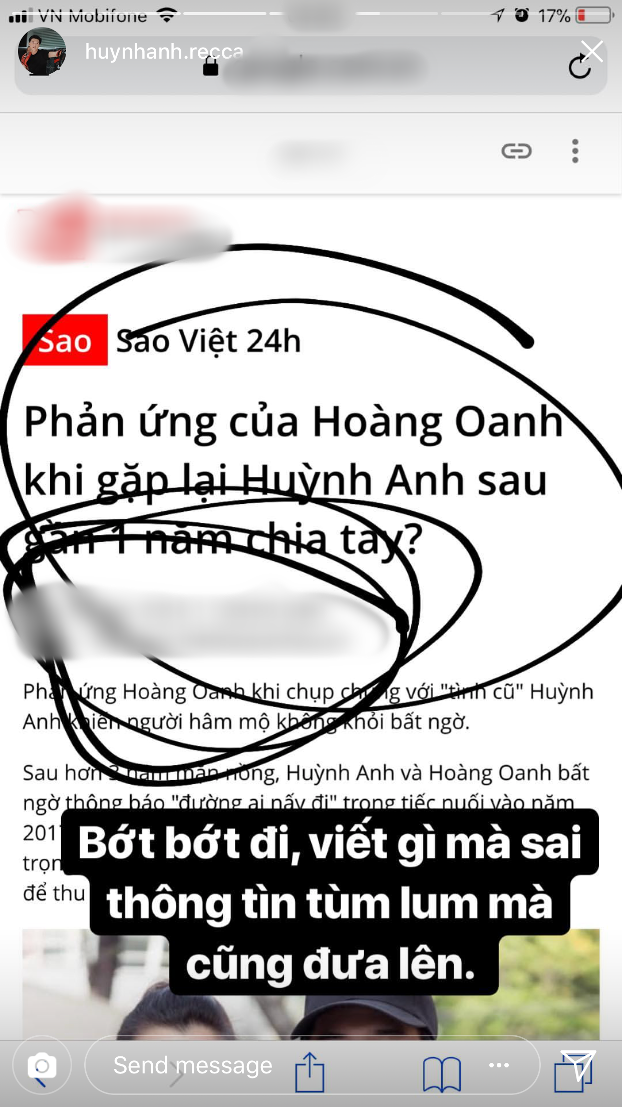 Huỳnh Anh phản ứng khá gay gắt trước những thông tin sai lệch.