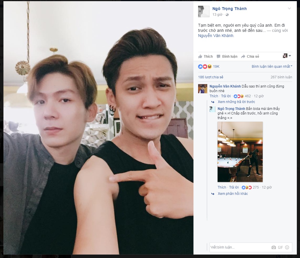 Tuy nhiên, 1 ngày trước khi diễn ra lễ đính hôn, người anh thân thiết trong nghề của Kelvin Khánh - Tronie bất ngờ đăng ảnh cả hai cùng dòng chia sẻ đầy khó hiểu: “Tạm biệt em, người em yêu quý của anh. Em đi trước chờ anh nhé, anh sẽ đến sau…”.