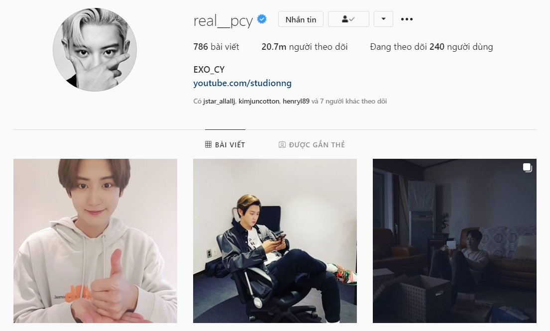 Vì vậy, chàng mỹ nam 27 tuổi đã vượt G-Dragon (Bigbang), Sehun và chỉ đứng sau Jennie, Lisa của BLACKPINK để đứng hạng 3 trong danh sách những sao Hàn sở hữu lượng người theo dõi lớn tại xứ Kim Chi. Theo đó, những nghệ sĩ mà Chanyeol theo dõi trên tài khoản của mình cũng nhận được nhiều sự quan tâm. Hiện tại, anh ấy đang theo 240 tài khoản bao gồm các nhãn hàng, thương hiệu xa xỉ, một số thành viên EXO, các sao quốc tế nổi tiếng.