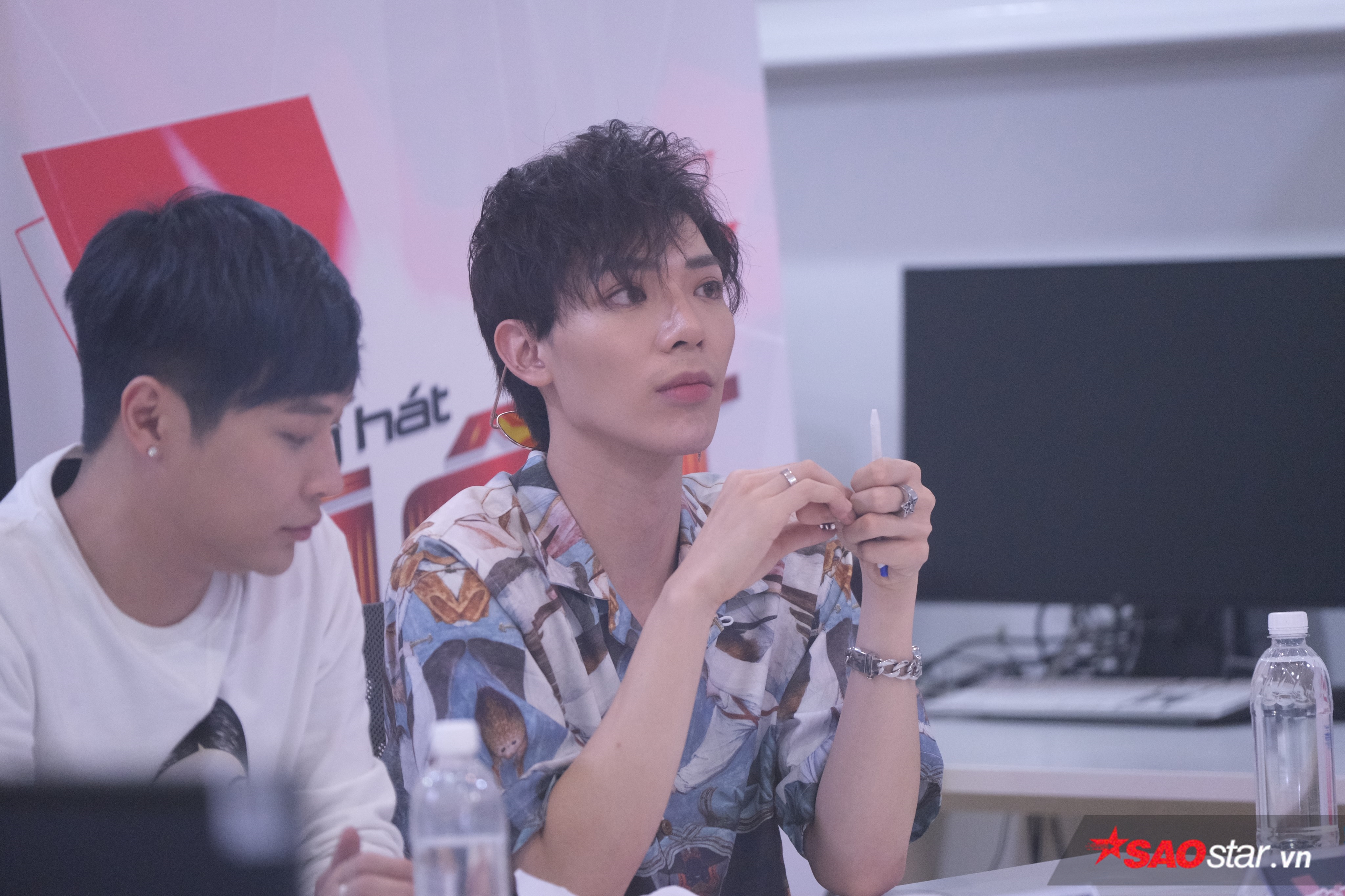 Lúc tập trung lắng nghe giọng hát của thí sinh.