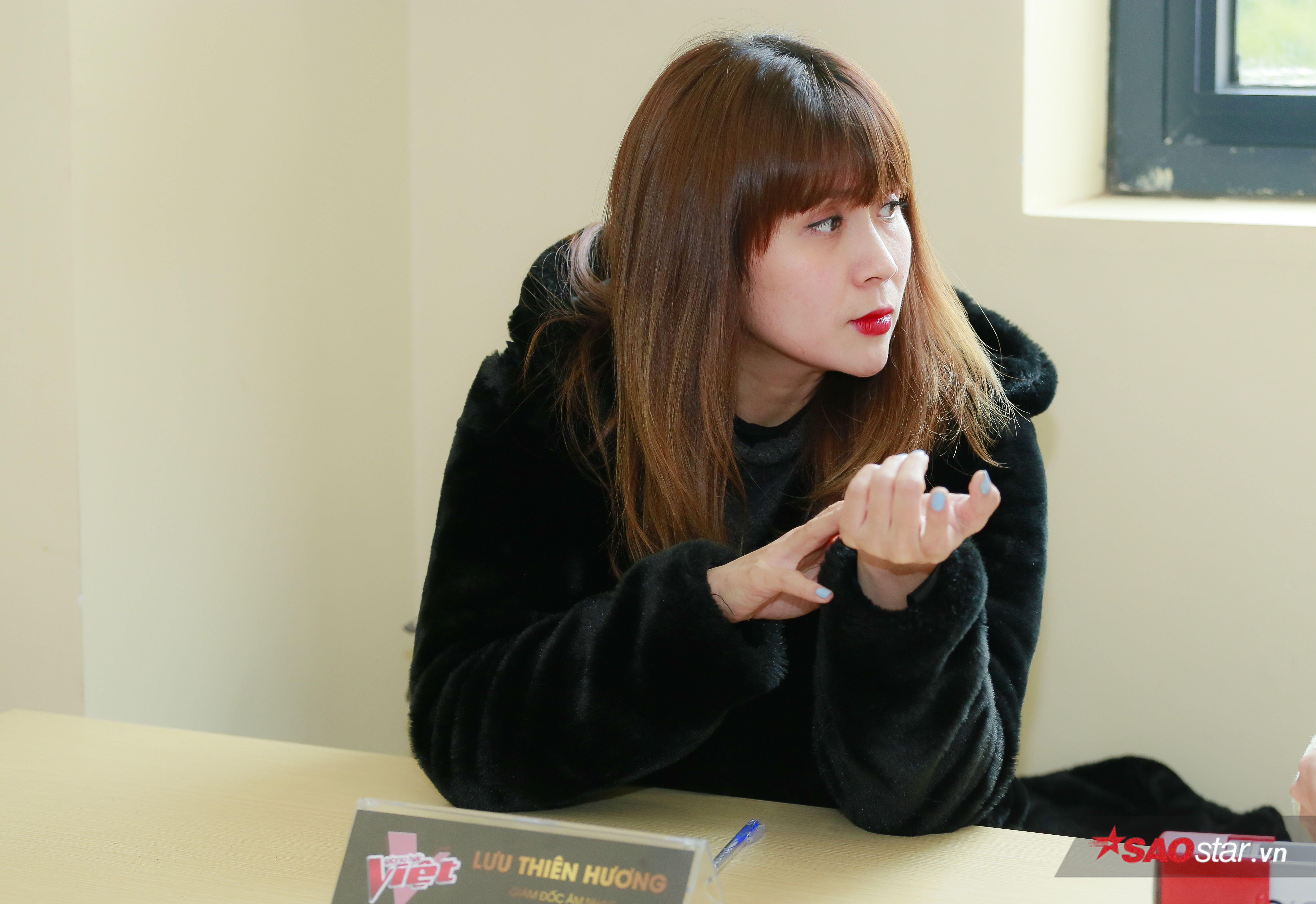 Giám khảo Lưu Hương Giang dù khá nghiêm túc nhưng cũng có không ít biểu cảm khác nhau trên ghế nóng.