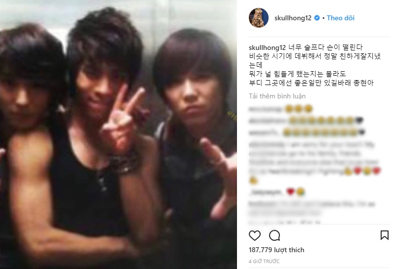 Trước cú sốc quá lớn này, rất nhiều sao Hàn đã chia sẻ cảm xúc, gửi lời chia buồn cũng như dành những lời tốt đẹp về Jonghyun trên trang cá nhân: