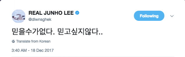 Thành viên 2PM Junho: ”Không thể tin được. Tôi không muốn tin”.