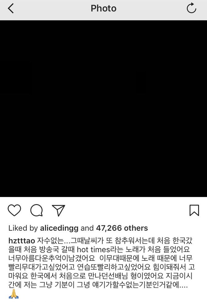 Cựu thành viên EXO Luhan: ”Không thể tin được. Hãy ra đi bình thản nhé. Người có giọng hát tuyệt vời nhất”.