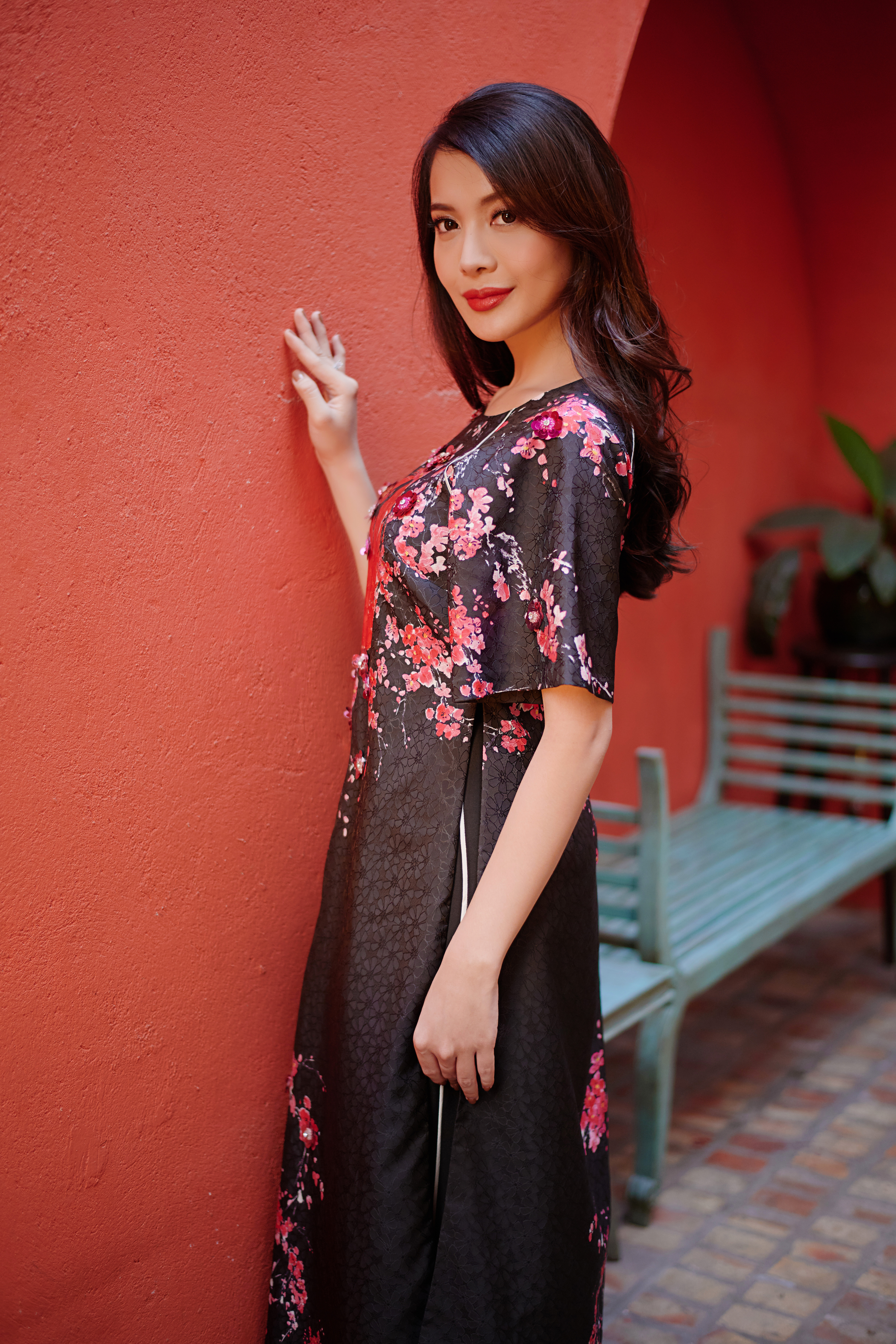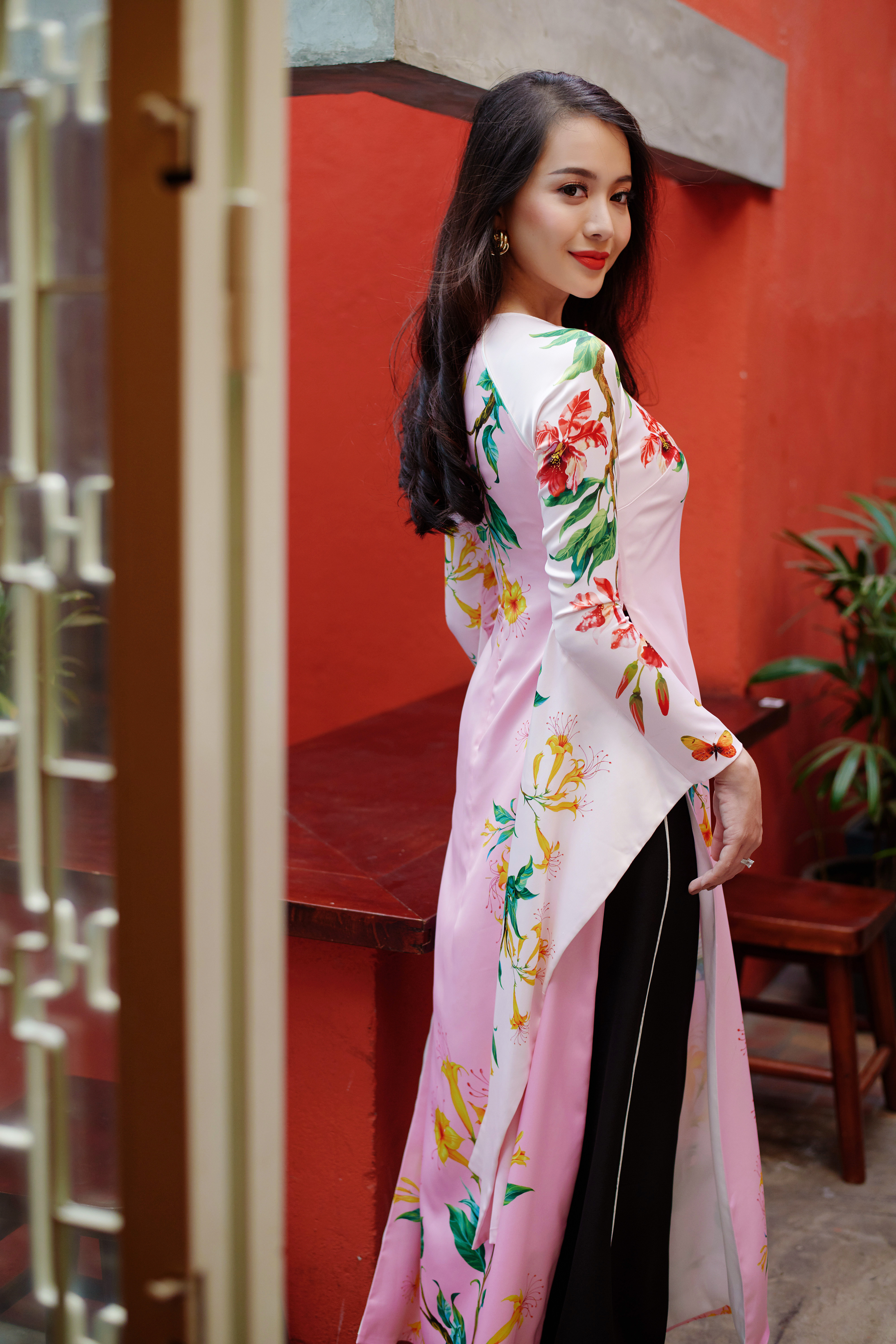 Bộ sưu tập áo dài dành cho dịp Tết Kỷ Hợi sử dụng chất liệu gấm, lụa sang trọng và giữ nguyên phom dáng truyền thống. NTK Adrian Anh Tuấn đã chú trọng vào họa tiết in trên áo nhằm tạo sự nổi bật, khác biệt cho trang phục mà vẫn đảm bảo nền nã, quý phái. Các thiết kế còn có chi tiết đính kết trên những cánh hoa trên nền áo dài nền nã, tạo thành điểm nhấn độc đáo.