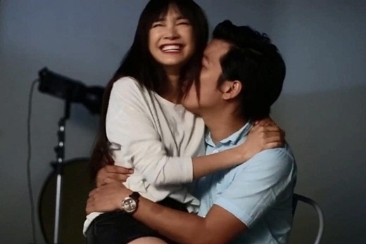 Kỉ niệm 1 năm bên nhau, Trường Giang bất ngờ xuất hiện tại trường quay phim Tuổi thanh xuân 2 kèm theo bó hoa to và tấm bảng ghi dòng chữ: “365 ngày vừa qua anh đã làm em khóc rất nhiều. Anh sẽ không như vậy nữa”.