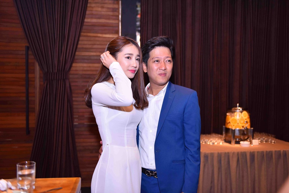 Nhã Phương tại tiệc mừng biệt thự 15 tỷ của Trường Giang hồi tháng 4/2017. Khi được hỏi Trường Giang có đồng ý cho Nhã Phương làm chủ nhân, đồng sở hữu căn biệt thự trị giá 15 tỷ này hay không, anh đã vui vẻ đáp rằng: “Cuộc đời tôi còn cho huống hồ gì ngôi nhà”.