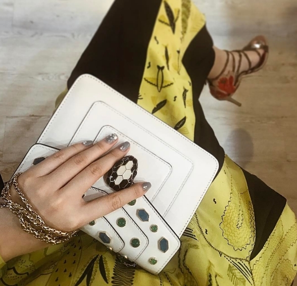 Một dịp khác gần đây, Angela Phương Trinh lại gây chú ý với set đồ gồm váy Valentino, giày Jimmi Choo và ví Bvlgari.