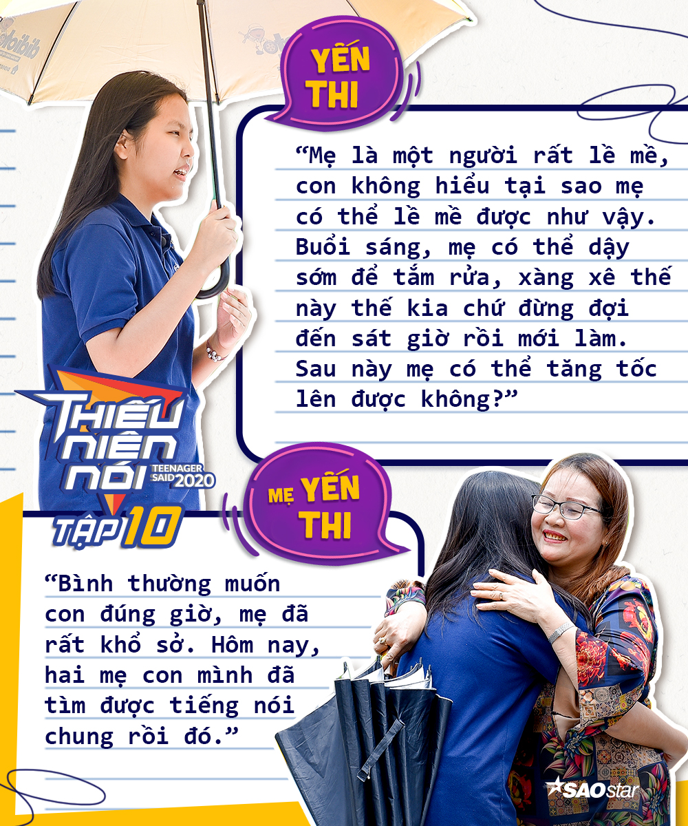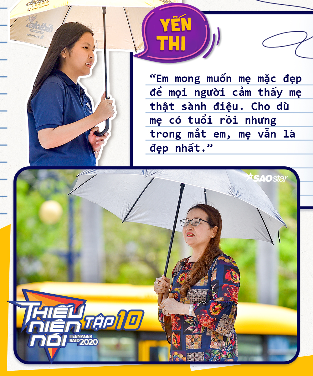 Không ngại “kể xấu” mẹ trên sóng truyền hình, Yến Thi khiến Gil Lê và Phương Chi vừa bất ngờ, vừa cười no nê. Đằng sau câu chuyện chê bai sự lề mề và phong cách ăn mặc “chán phèo” của mẹ là tình cảm yêu thương yêu hết mực của cô bé nữ sinh.