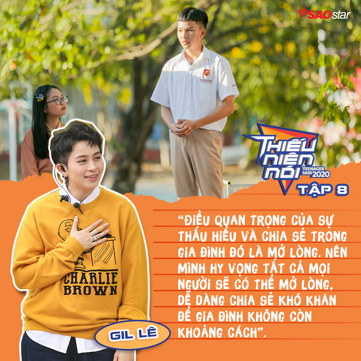 Chia sẻ về những sóng gió mà bản thân và gia đình đã từng trải qua khi còn nhỏ, Nhật Phong khiến Gil Lê trân trọng khen ngợi “Tuyệt vời” và vỗ tay tán dương. Hiểu được những áp lực, khó khăn trong cuộc sống đang đè nặng lên đôi vai của bố mẹ, nên Nhật Phong luôn cảm thông trước sự cộc cằn và giận dữ của người lớn.
