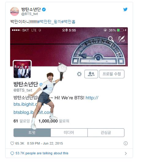 Khi BTS lần đầu tiên đạt 1 triệu người theo dõi trên Twitter, J-Hope đã tweet một ảnh kỷ niệm và tập tành một thói quen mới.