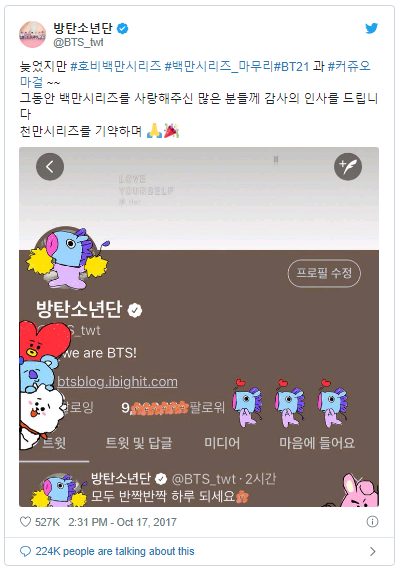 J-Hope tiếp tục thói quen này cho đến khi BTS đạt 9 triệu người theo dõi trên Twitter vào hai năm sau đó.
