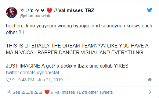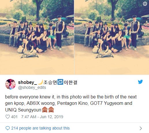 Nhưng hóa ra Kino và Yugyeom không phải là hai Idol duy nhất xuất hiện trong tấm hình. Mới đây bức ảnh đã được cư dân mạng “đào mộ” lại và nhanh chóng gây sốt bởi giờ đây đã có thêm ba cậu bé trong bức ảnh trở thành Idol. Đó là Hyunjae (THE BOYZ), Woong (AB6IX) và Seungyeon (UNIQ) - hiện đang tham gia Produce X 101