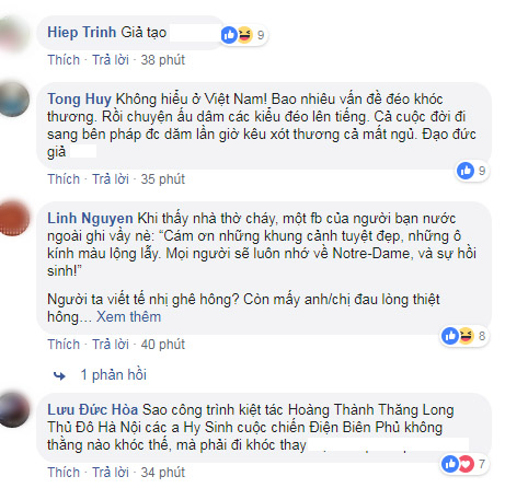 Vừa qua, trên trang cá nhân nữ MC dẫn chương trình - Á hậu Hoàng Oanh cũng đưa ra quan điểm cá nhân của mình: “Mọi chuyện rồi sẽ ổn thôi! Sao dạo này mọi người thích bình phẩm, chỉ trích quá à! Chuyện người ta yêu quý và thương xót Paris, không liên quan đến chuyện nhà mình. Giá trị về văn hoá tinh thần luôn là một trong những điều kì diệu và quý giá nhất trên đời này!”.