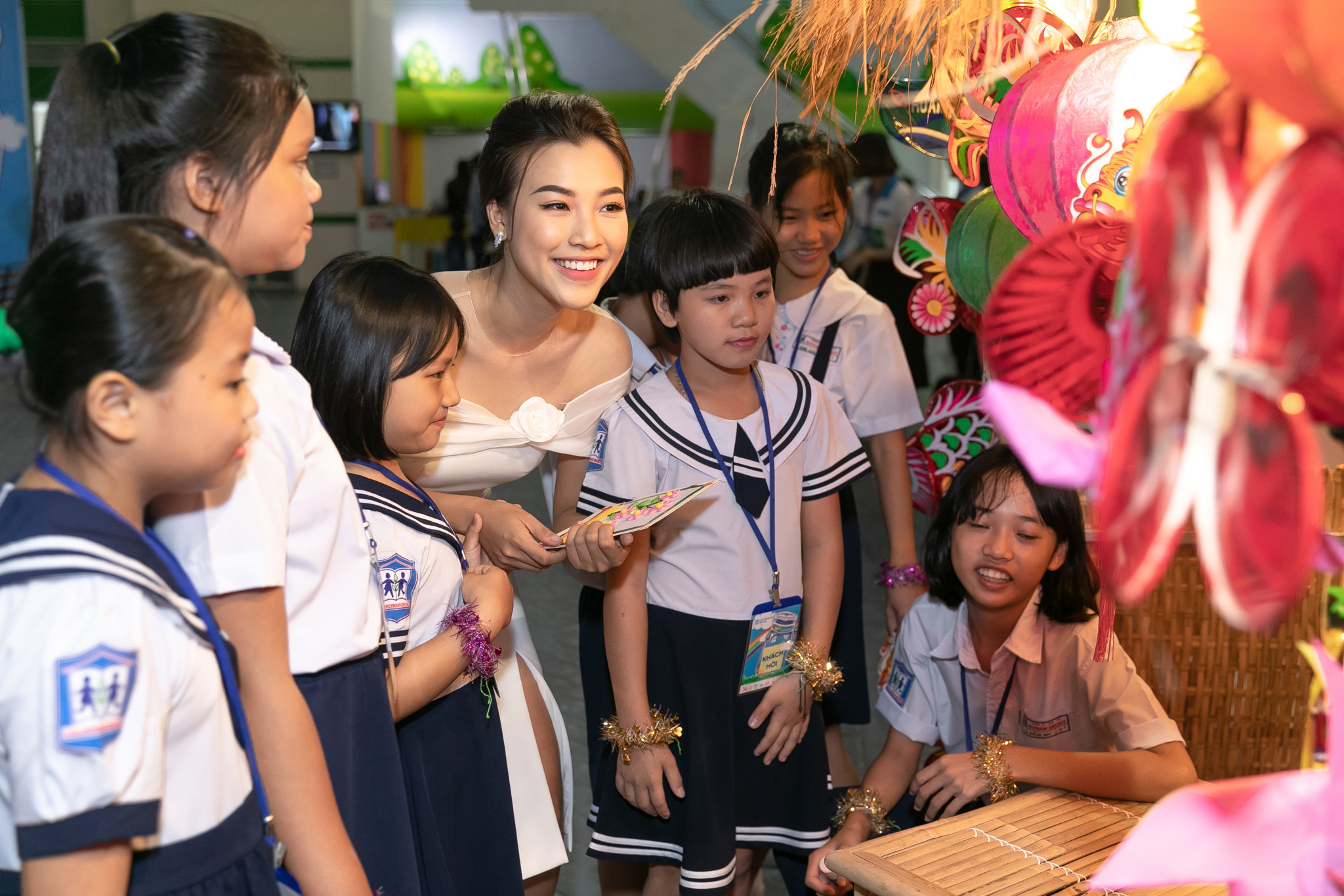 Á hậu tỏ ra vô cùng xúc động trước những mảnh đời, số phận trẻ em tại đây.