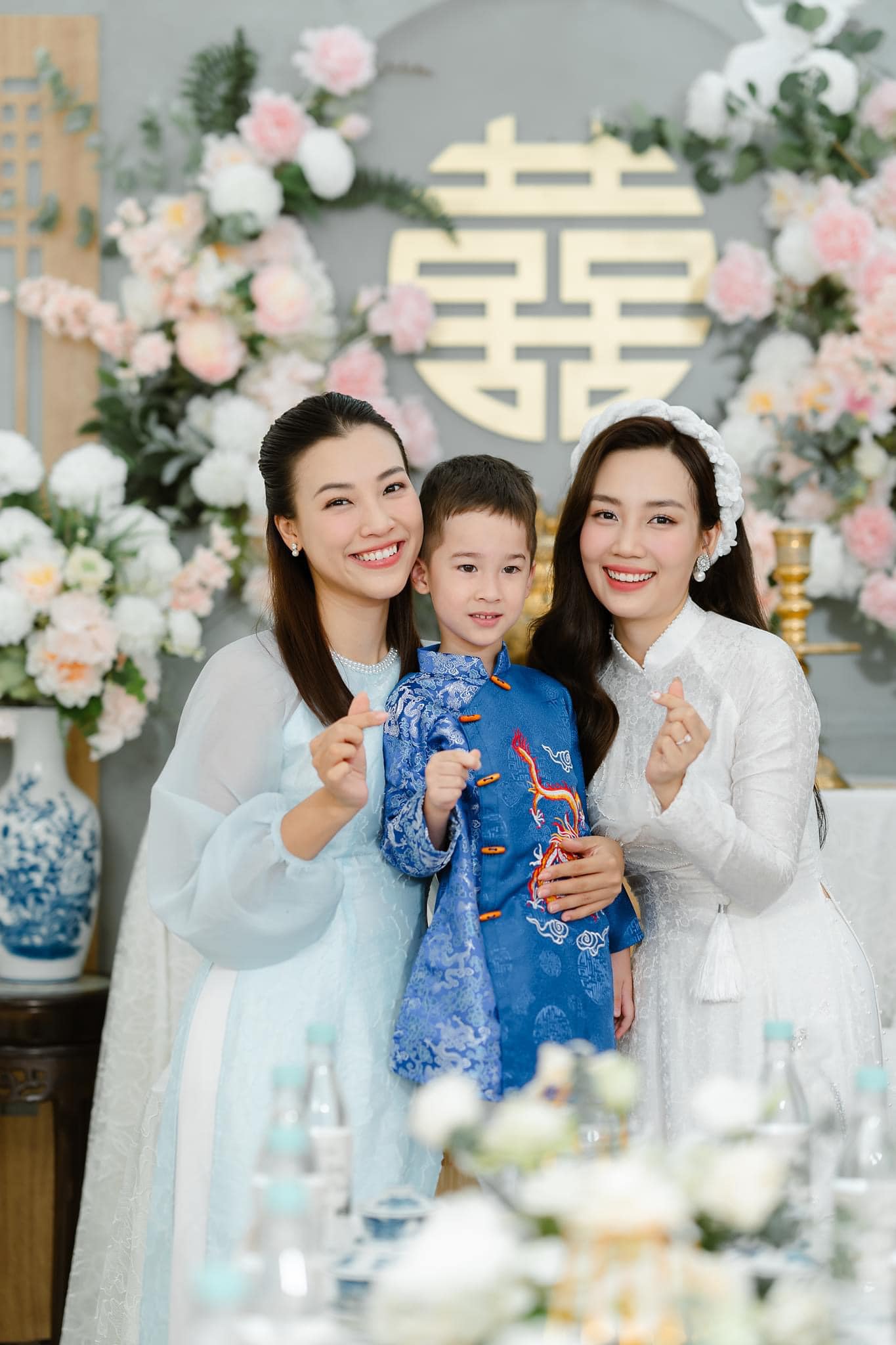 Ngày 12/8, Á hậu Hoàng Oanh đăng tải loạt hình ảnh ghi lại những khoảnh khắc đẹp tại lễ ăn hỏi của em gái ruột Hoàng Dung. Trong tà áo dài xanh, nàng hậu "bừng sáng" visual rạng rỡ, trong trẻo không chút điểm trừ. Bé Max cũng xuất hiện với diện mạo cao lớn vượt bậc, ngoại hình điển trai "đốn gục" tim người hâm mộ.