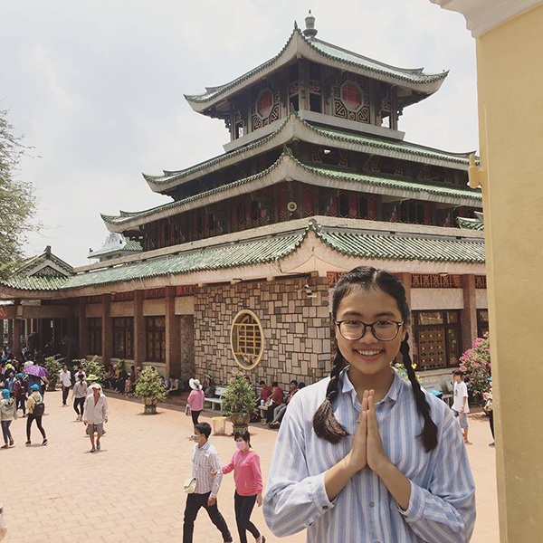 Phương Mỹ Chi giản dị đi chùa cầu may.