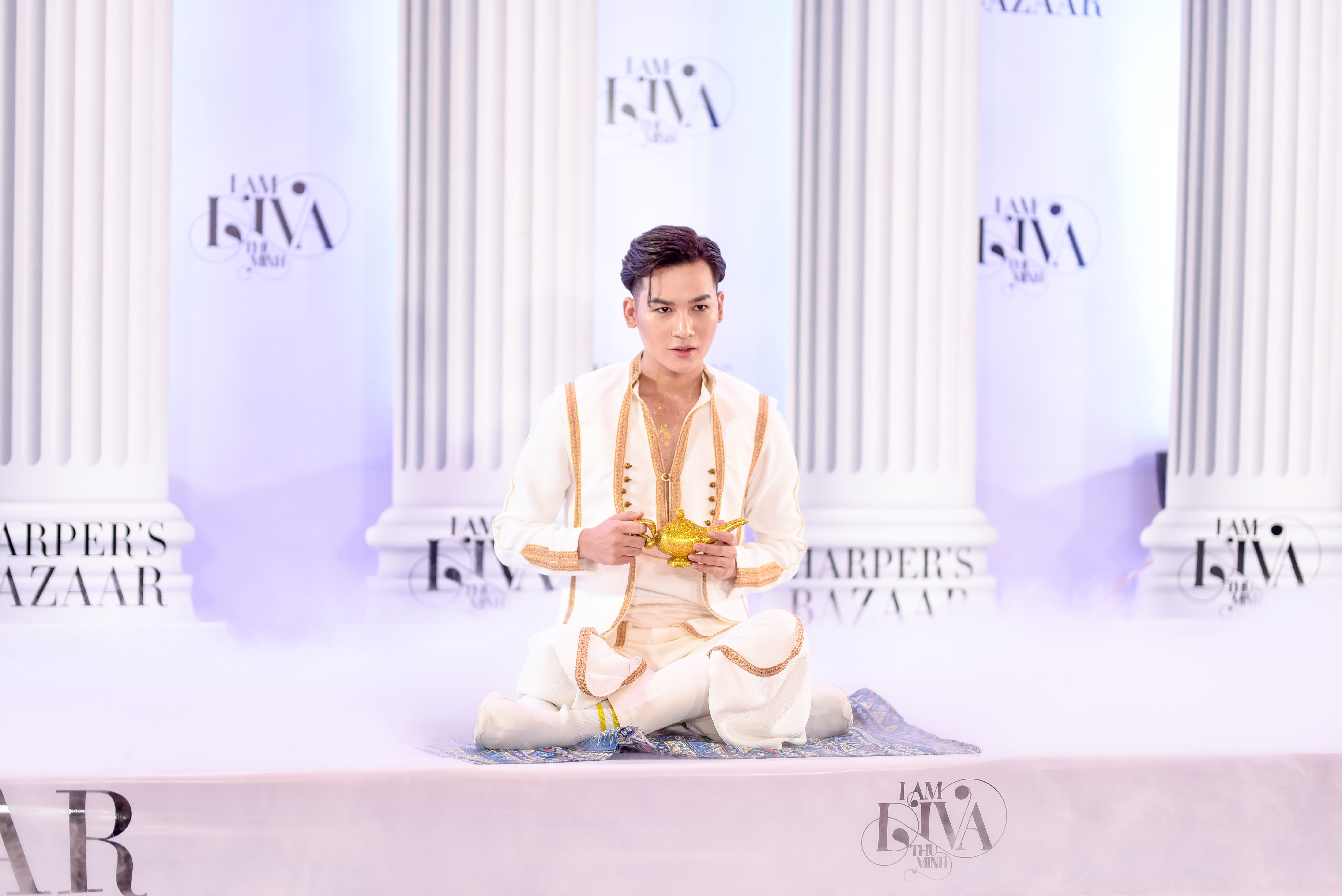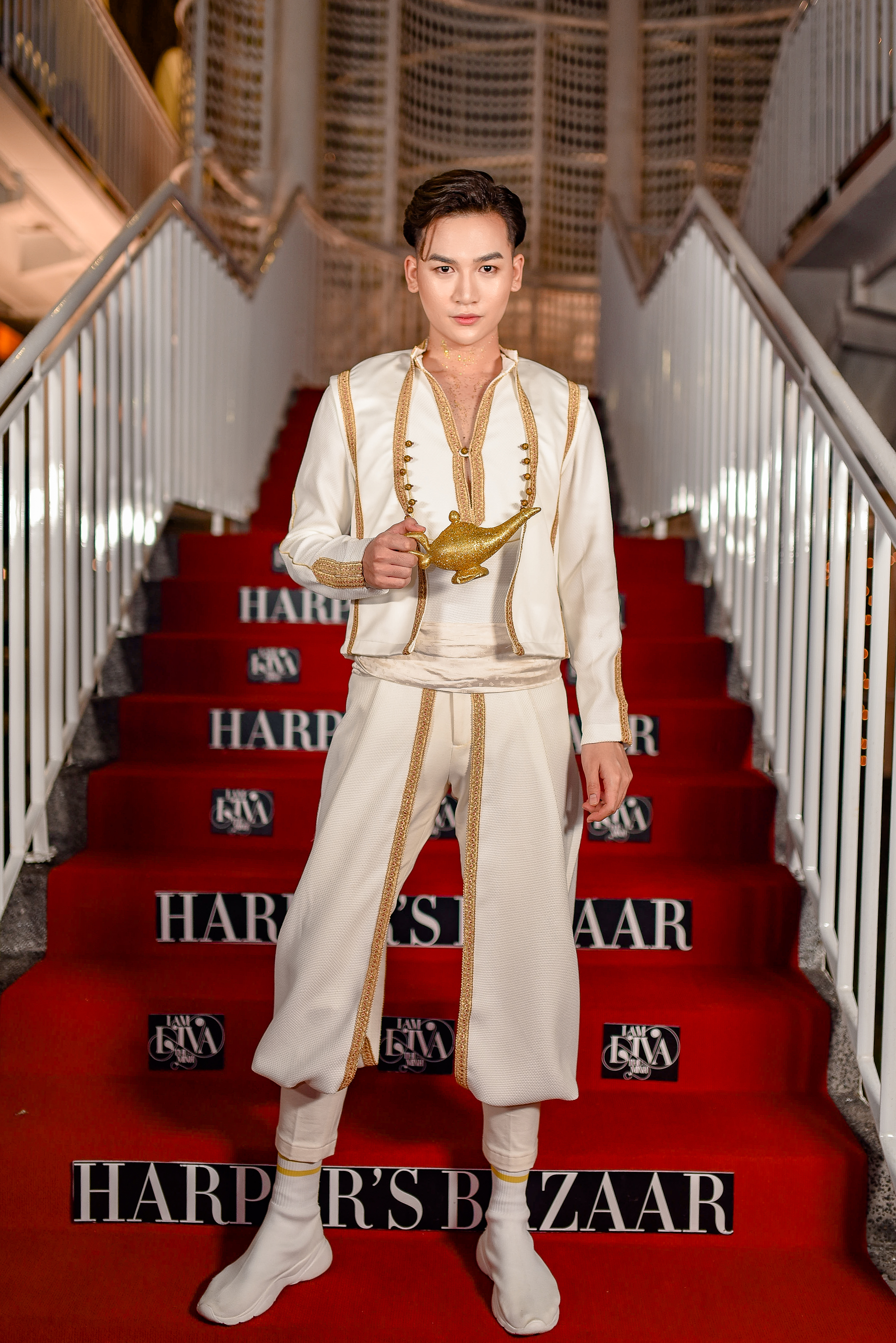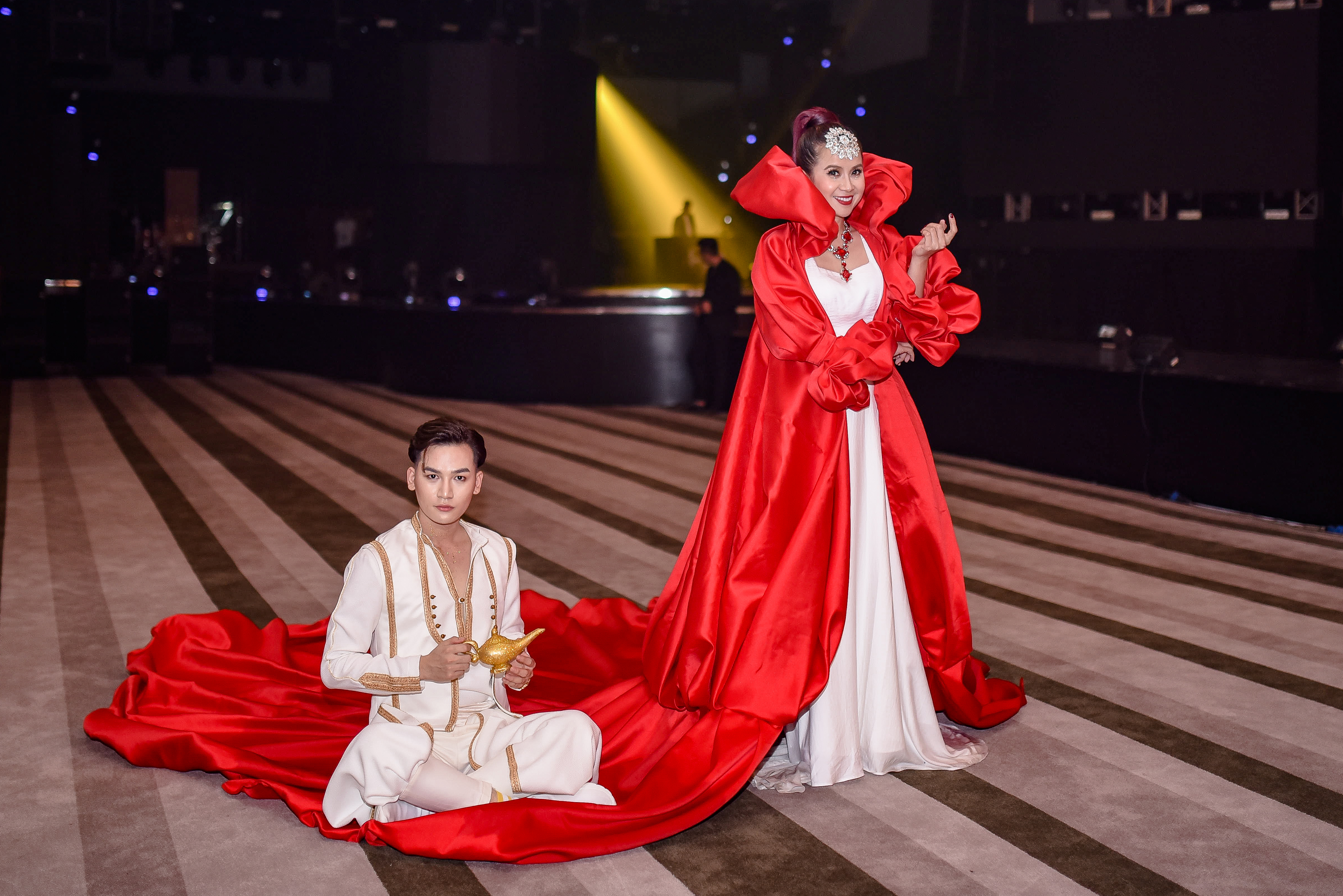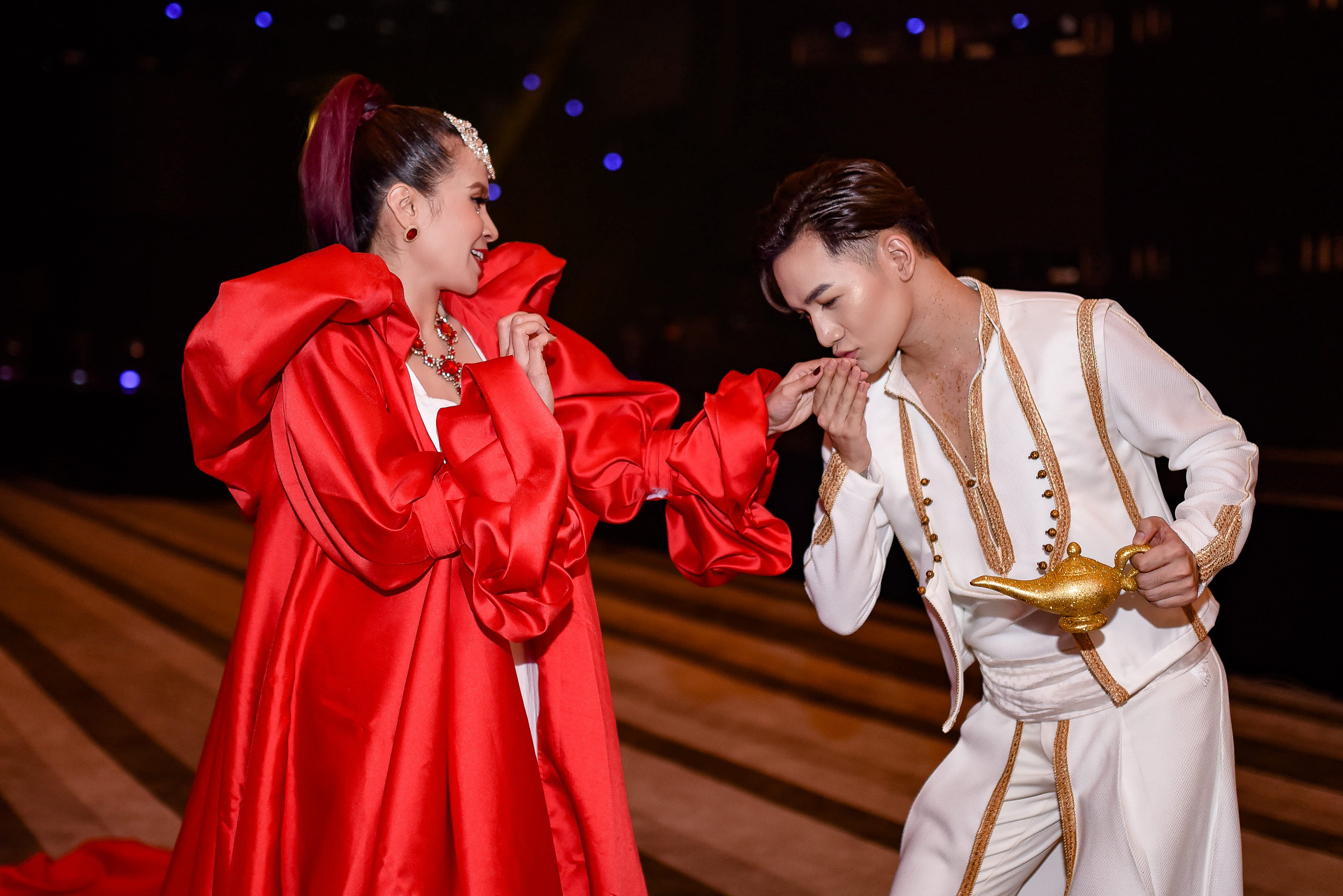 Cũng chính vì thế mà Ali Hoàng Dương không ngần ngại hóa thân thành nhân vật Aladdin sánh đôi và sải bước cùng Lưu Thiên Hương với bộ cánh nữ thần.