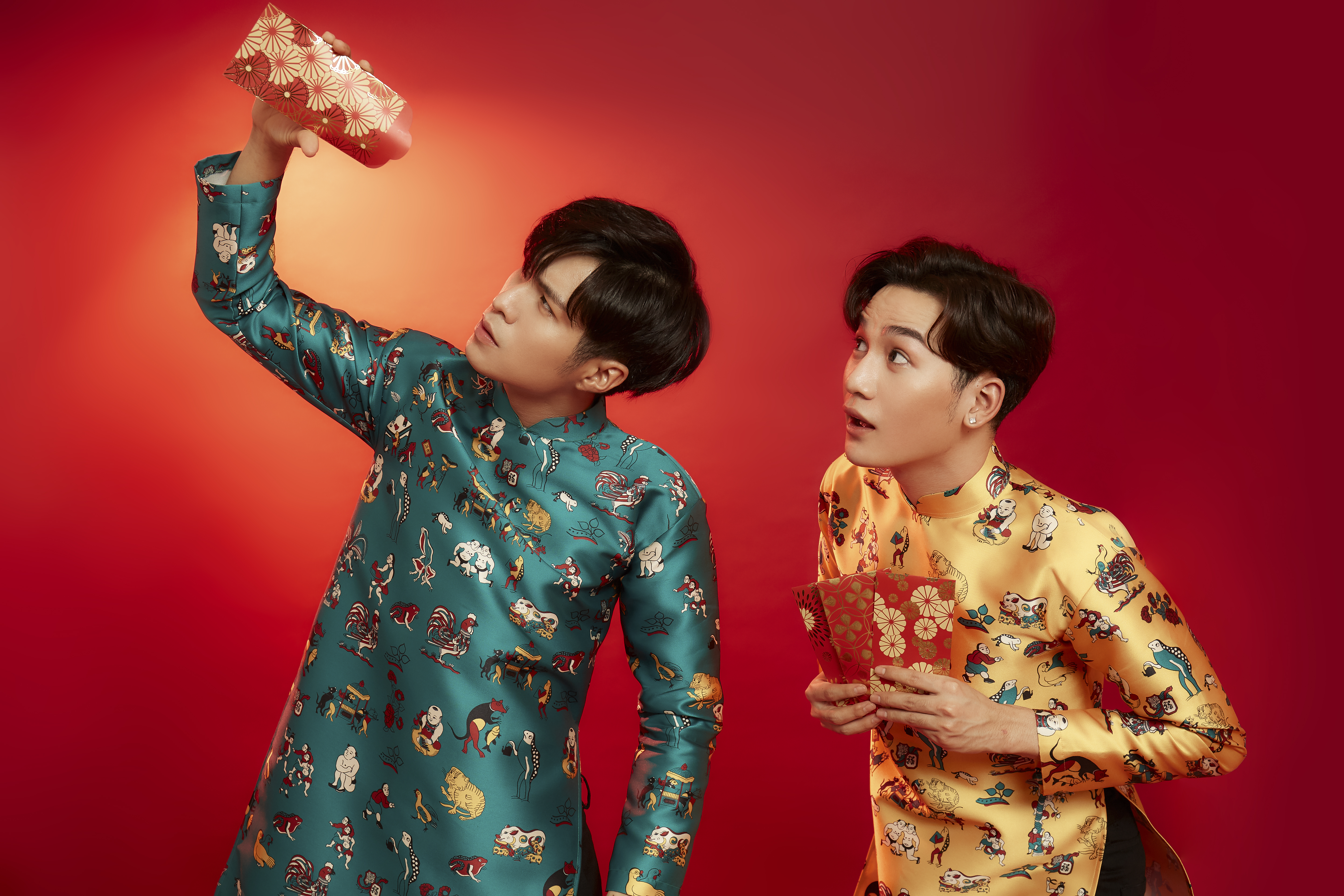Mừng Xuân Canh Tý, Ali Hoàng Dương đã quyết định rủ rê cậu bạn thân Otis Đỗ Nhật Trường chụp bộ ảnh đón Tết gửi tặng người hâm mộ thay lời chúc một năm mới an khang thịnh vượng. Diện những chiếc áo dài cách tân với màu sắc và hoa văn bắt mắt nhưng vẫn không làm giảm đi sự nam tính, hai anh chàng đưa ra khá nhiều gợi ý trang phục cho cánh “mày râu” trong dịp Tết năm nay. Vốn là đôi bạn thân thiết, không quá khó khăn cho Ali Hoàng Dương cũng như Otis Đỗ Nhật Trường hoàn thành bộ ảnh ghi lại những khoảnh khắc đẹp cùng nhau.