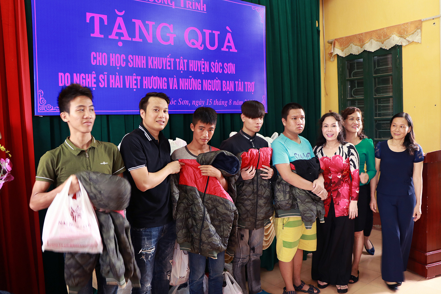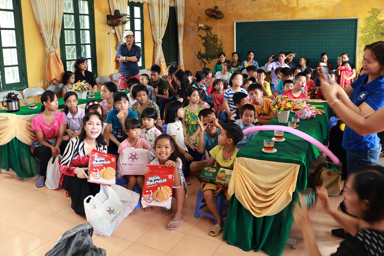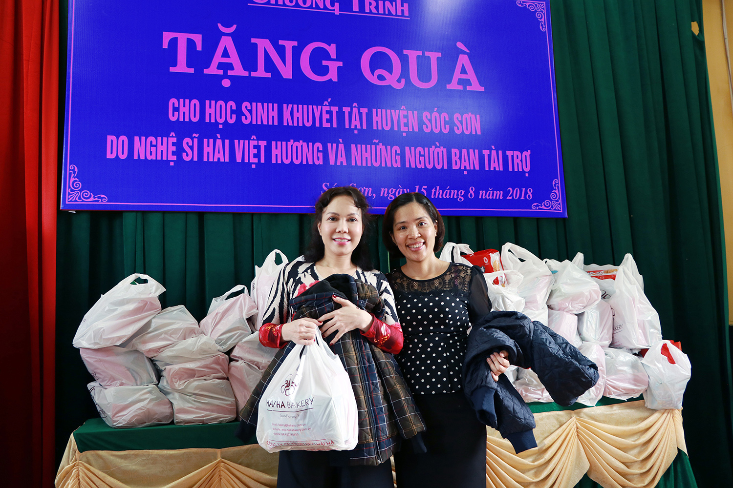 Việt Hương, ông xã Hoài Phương, bé Elyza và những người bạn của nữ nghệ sĩ đã chung tay chuẩn bị những phần quà thiết thực để gửi đến các em. Ngoài bánh, kẹo để các em thưởng thức, Việt Hương còn chu đáo chuẩn bị sẵn những chiếc áo ấm để mùa đông sắp đến, không bạn nhỏ nào phải chịu rét đến trường.